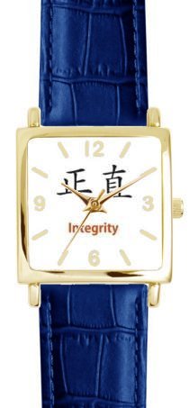 Please Note: This Watch is designed and intended primarily for older children (13 years or older). WatchBuddy Watches are the World's Most Lovable and Finest Theme Watches, they combine beauty, style and grace with functionality. This Deluxe Gold Tone Square Case Watch has a Square Gold Tone metal case, a stainless steel case back (laser engraved) and a genuine leather strap. The watch has a precision quartz crystal three hands movements - hour, minute and second. The watch is shower proof. Battery life is 2 years. Watches have a one year limited warranty. Watches come in two sizes - Large Size: for standard men's or jumbo women's size and Small Size: for standard women's or children's size. The watch comes packaged in a high density plastic capsule with the warranty information. Each WatchBuddy Watch is carefully designed & crafted and then graced with an image of world class fine art (paintings & drawings); fine photographic art; charming, endearing or humorous realistic art or whimsical cartoon art; or iconic designs & symbols. Our vast library of images encompasses almost every theme and subject imaginable! These watches are a unique and perfect gift idea or present for all occasions such as a Birthday, Anniversary, Mother's Day, Father's Day, Valentine's Day, Graduation, Bar Mitzvah, Bat Mitzvah, Christmas or Hanukkah..../ Integrity - Chinese Symbol - WATCHBUDDY® DELUXE GOLD TONE SQUARE CASE WATCH - Blue Strap - Small Size (Children's: Boy's & Girl's Size) / China Blue